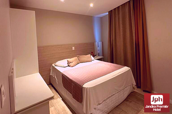 Aqui no Jandira Premiêr Hotel oferecemos acomodações confortáveis, com tudo que precisa para relaxar sem preocupações. Aqui seu momento de descanso é prioridade!